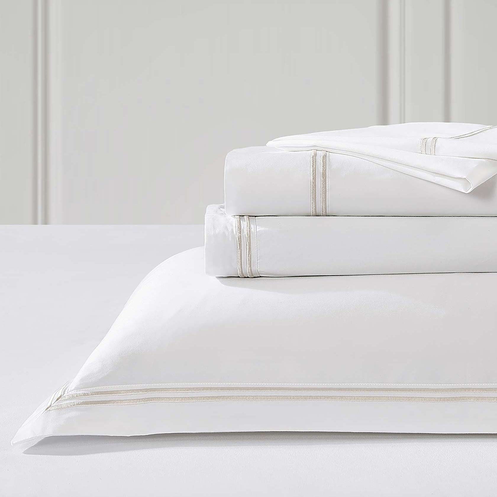 Elevate your bedding with our sheet set Santiago. Twin merrow stitch stripes create a timeless an elegant look. In Stone, Steel and Charcoal, three fashionable hues, which will pair famously with any colour scheme. Crafted from 600 TC cotton sateen, these luxurious sheets will provide comfort all night long.