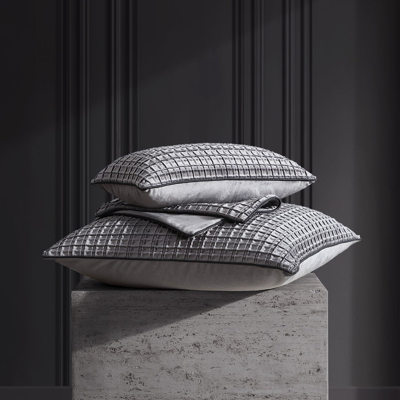 Opulence introduces a stunning new accessory range for Davinci, showcasing luxurious velvet with a pleated geometric design that effortlessly enhances any space. Available in versatile core colours, it pairs seamlessly with any existing Davinci collection. The addition of a metallic lurex corded piped edge adds a refined touch of elegance, making styling both effortless and sophisticated.