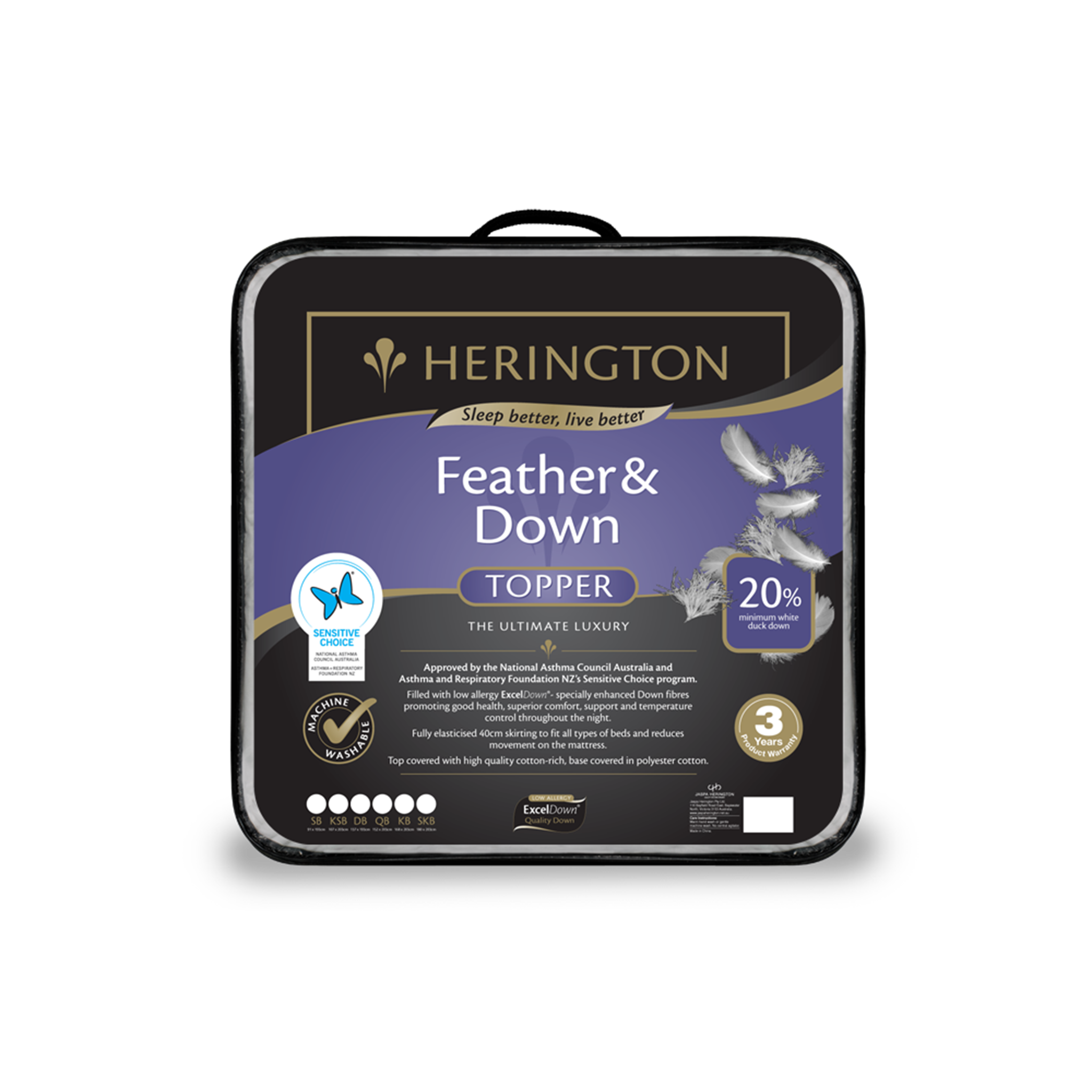 Customers please note: We have unfortunately noticed a small mark on the Herington Feather & Down Toppers. The mark is a result of the bag rubbing on the product whilst in the warehouse. Please be re-assured that the mark doesn’t impact the performance, feel or wear of the product and the mark washes out by hand washing the actual marked spot. And also, the topper is covered by the sheet and so won’t be seen. Please also note that this mark is not deemed a fault in the product and is not returnable.