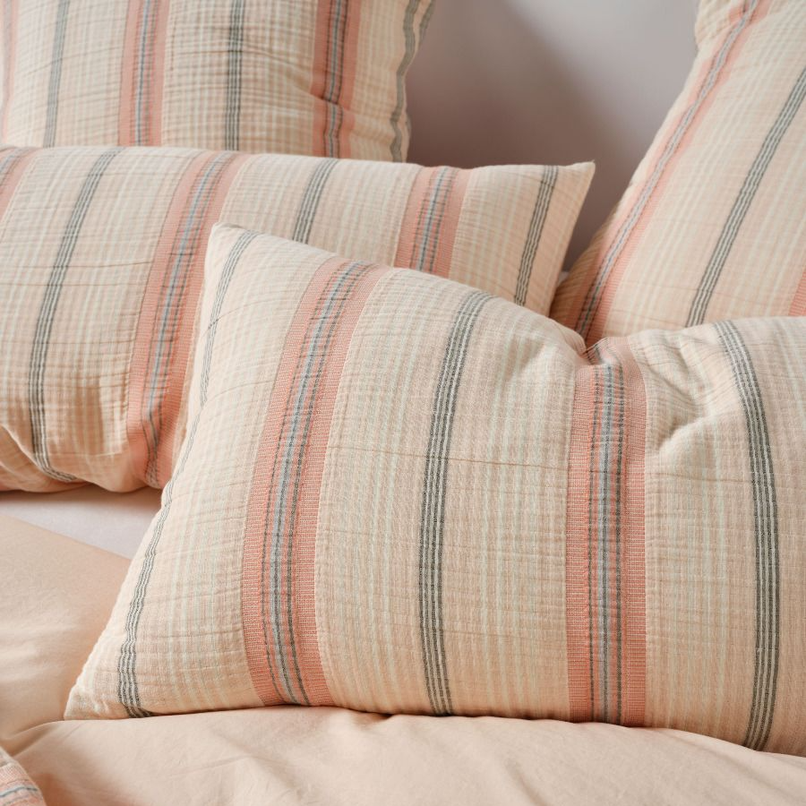 Coolum is much more than your usual stripe. Woven from a double cotton jacquard, this yarn-dyed charmer in papaya provides a textural, luxe feel needed for your summer boudoir.