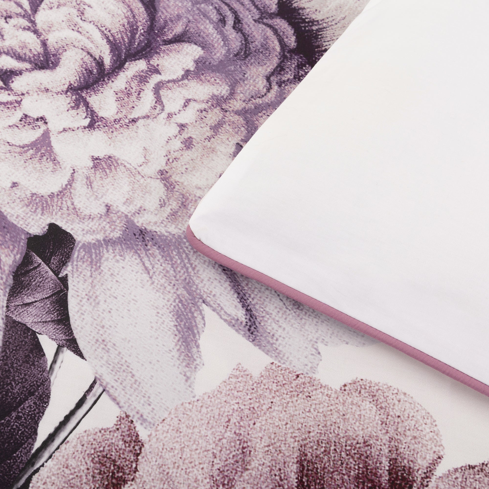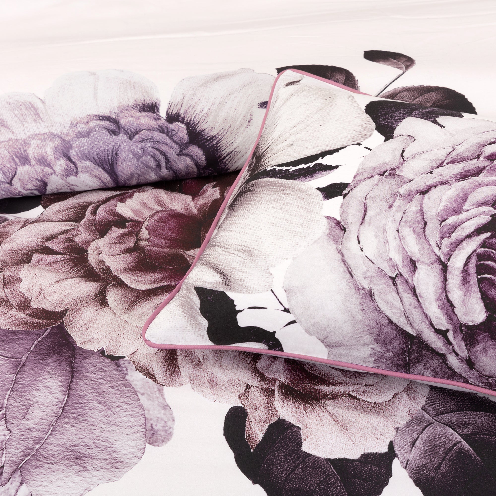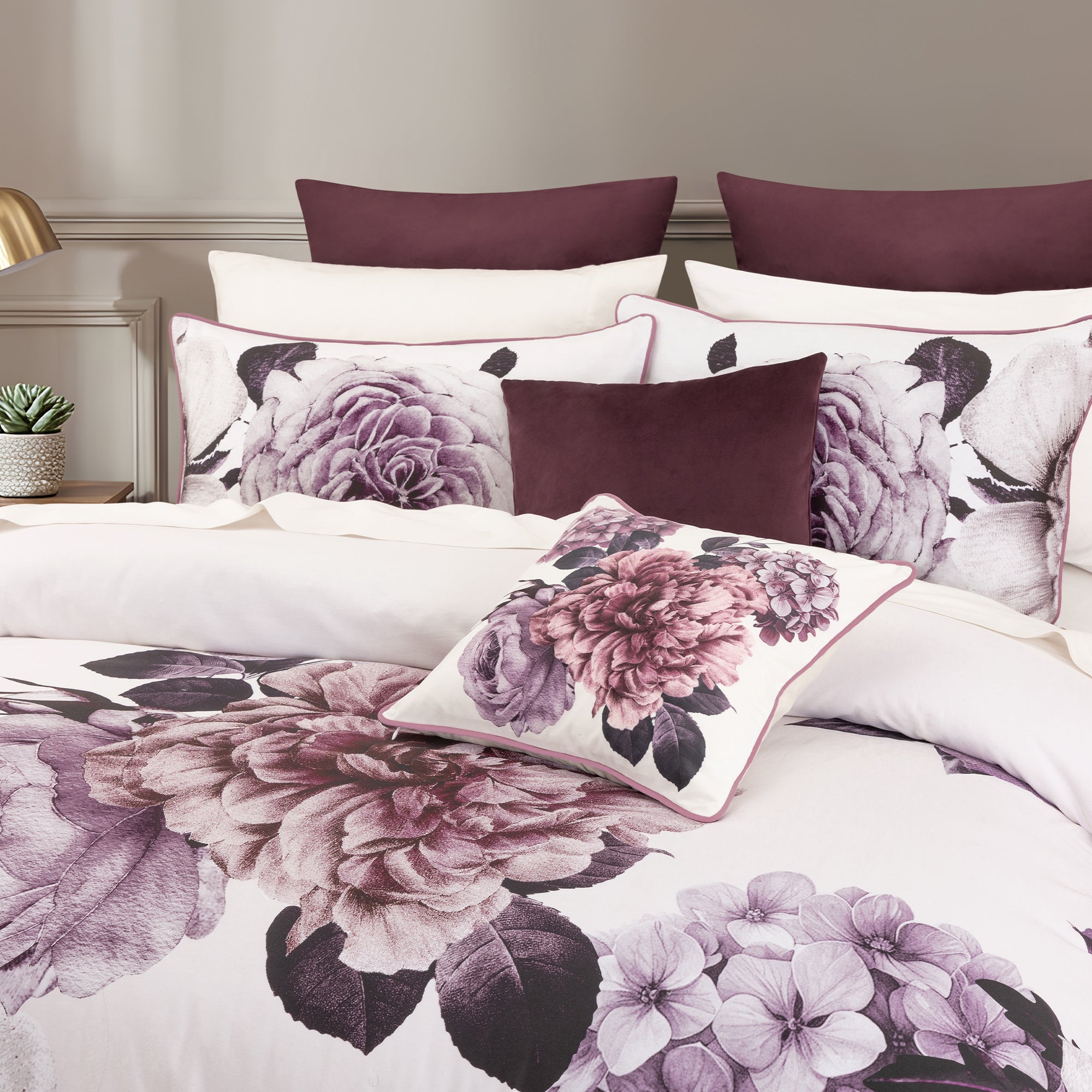 Crafted from premium cotton sateen. This quilt cover features a bold yet graceful arrangement of oversized blooms in rich romantic hues of deep plum, soft mauve and delicate blush. Beautifully contrasted against a crisp white background, this palette creates a harmonious balance of warmth and freshness.