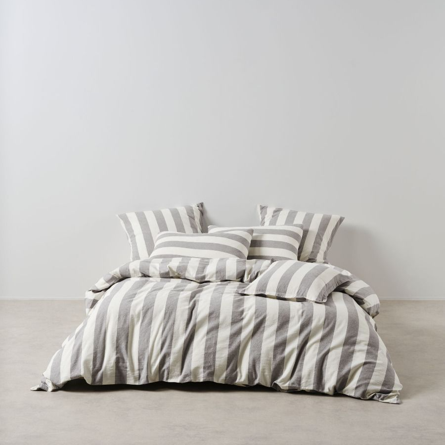 Vintage Stripe Steel Quilt Cover Set by Linen House