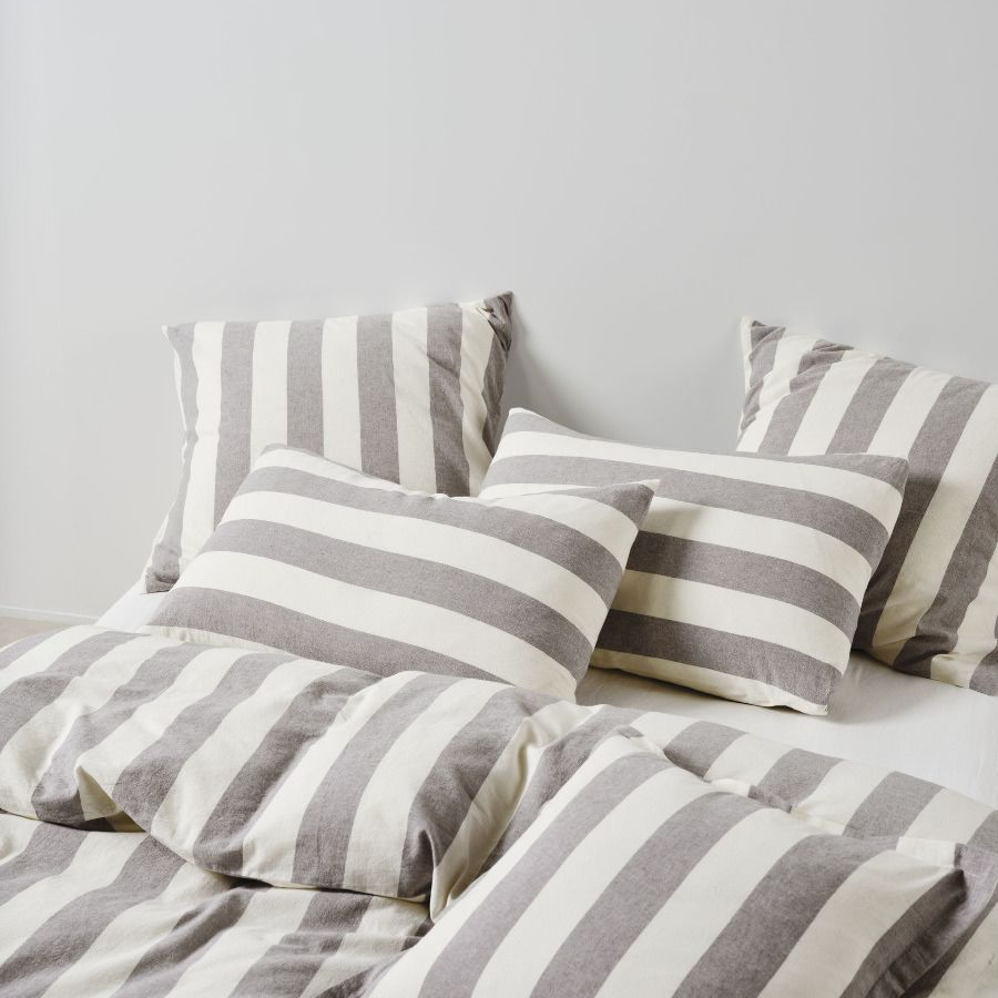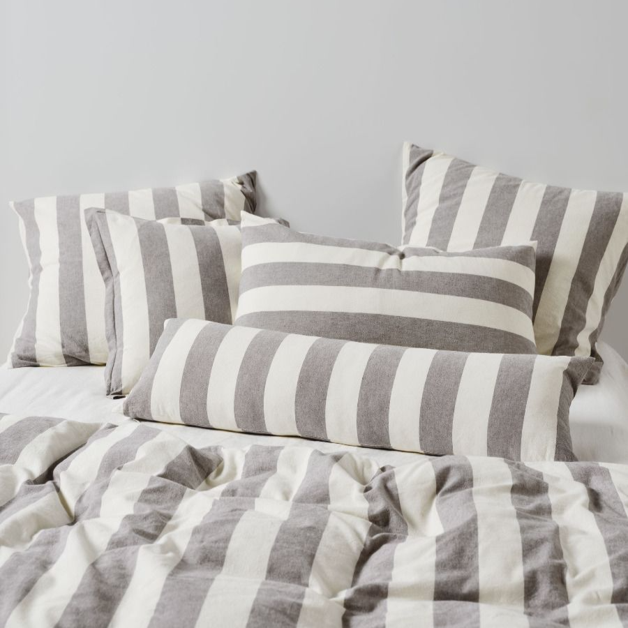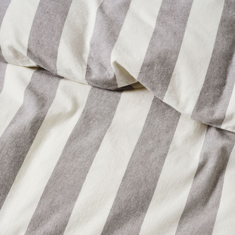 A yarn-dyed stripe in a contemporary, easy-living aesthetic, Vintage Stripe transcends time. Made from a blend of washed cotton and linen, this fully reversible classic now comes in steel.