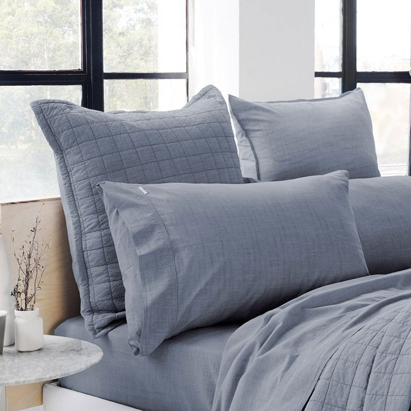 Reilly's vintage washed chambray gives the bed the feel of your favourite, lived-in shirt. It's just as low-maintenance too - tumble drying will only enhance its tousled, casual appearance. Completed with quilted throw and sham, the whole story captures the easy living, contemporary lifestyle. Mix the complementary colours across the range. Enhance your living space with Reilly pillow cases, quilt cover sets or sheet sets.