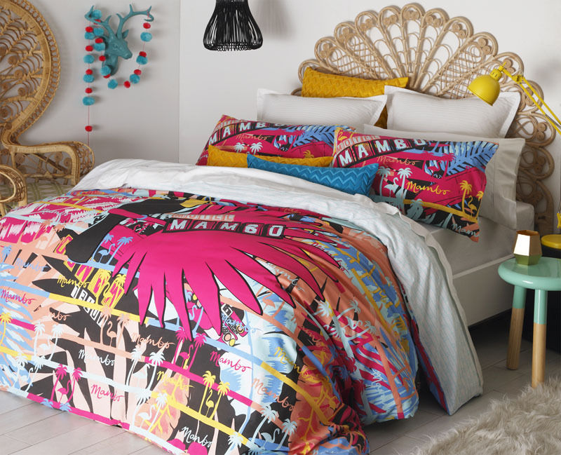 This bright and colourful design by Mambo design will make any girl the envy of all her friends. With Bold Bright colours this Quilt Cover will brighten any bed room, the Quilt Cover and Pillowcase feature a Mambo panel print design with various bright colours with a co-ordinated blue flamingo printed reverse.
