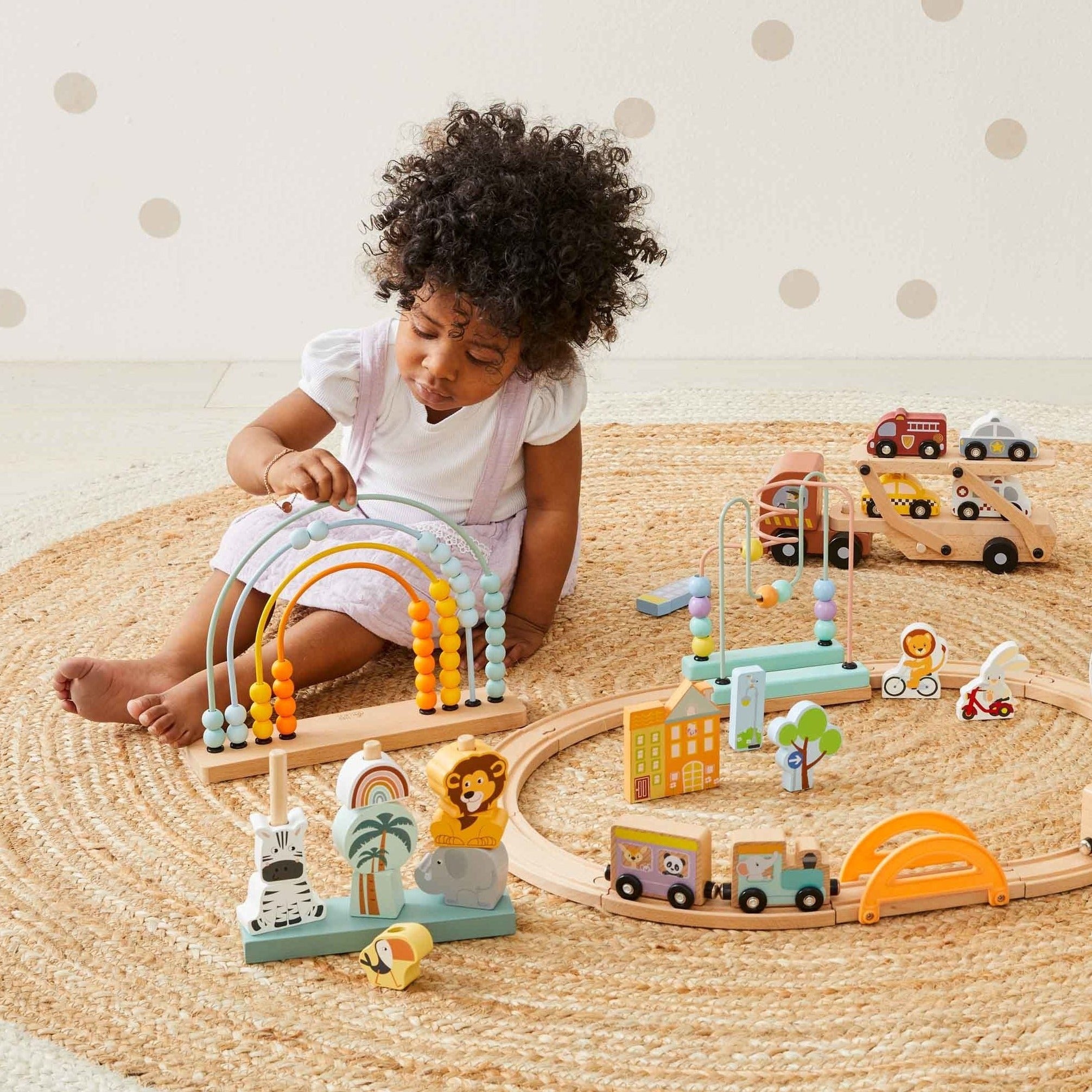 This Rainbow Bead Abacus has a modern colour palette and trendy look. It encourages development of hand-eye coordination and helps children learn numeracy through play. Made of wood with completely non-toxic, child-friendly paints and finishes.