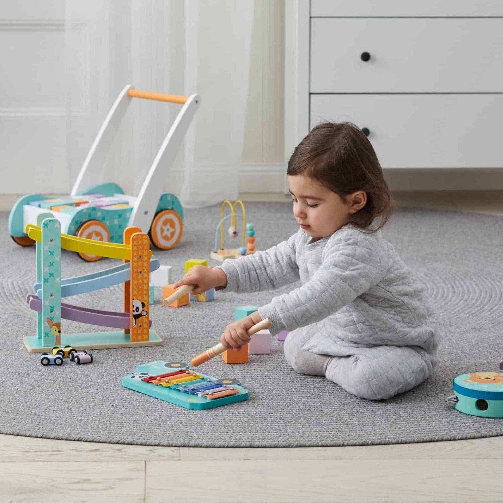 Designed in the shape of a bus with a happy little Panda as the driver, this beautifully coloured Xylophone is the perfect toy for a toddler to explore sounds and have fun making melodies!
