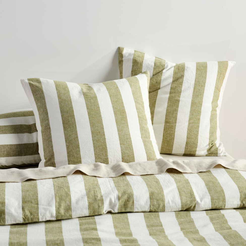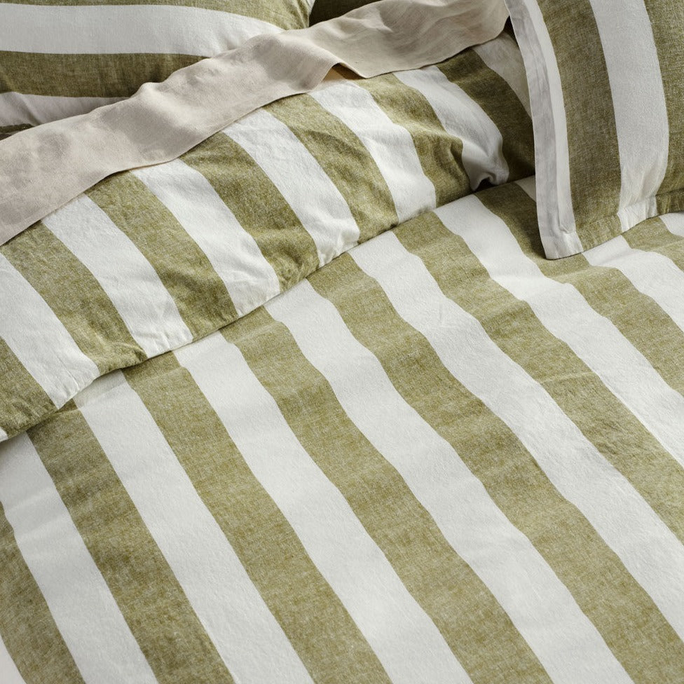 Vintage Stripe Pesto Quilt Cover Set by Linen House