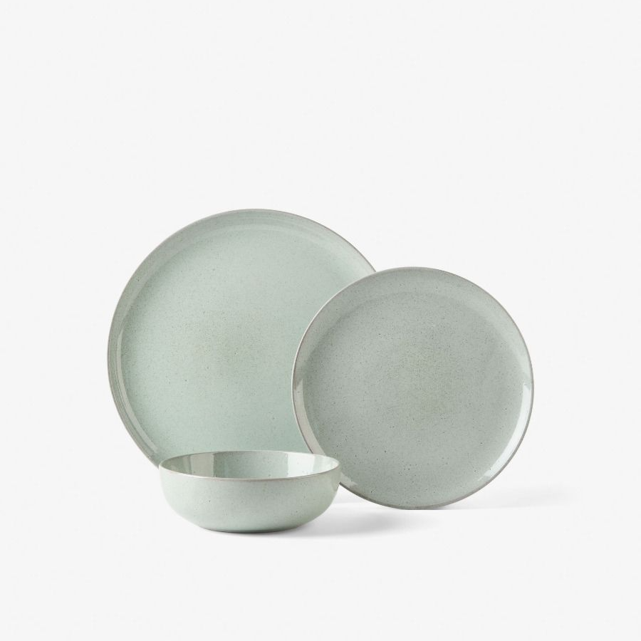 A 12-piece dinnerware set in a soothing, sage-green hue, Bobbie is beautifully crafted to bring a serene touch to your dining. Made from durable stoneware, each piece exudes a calm, modern vibe for your table, and includes essential pieces for a four-place setting, offering a complete solution for everyday or special-occasion dining.