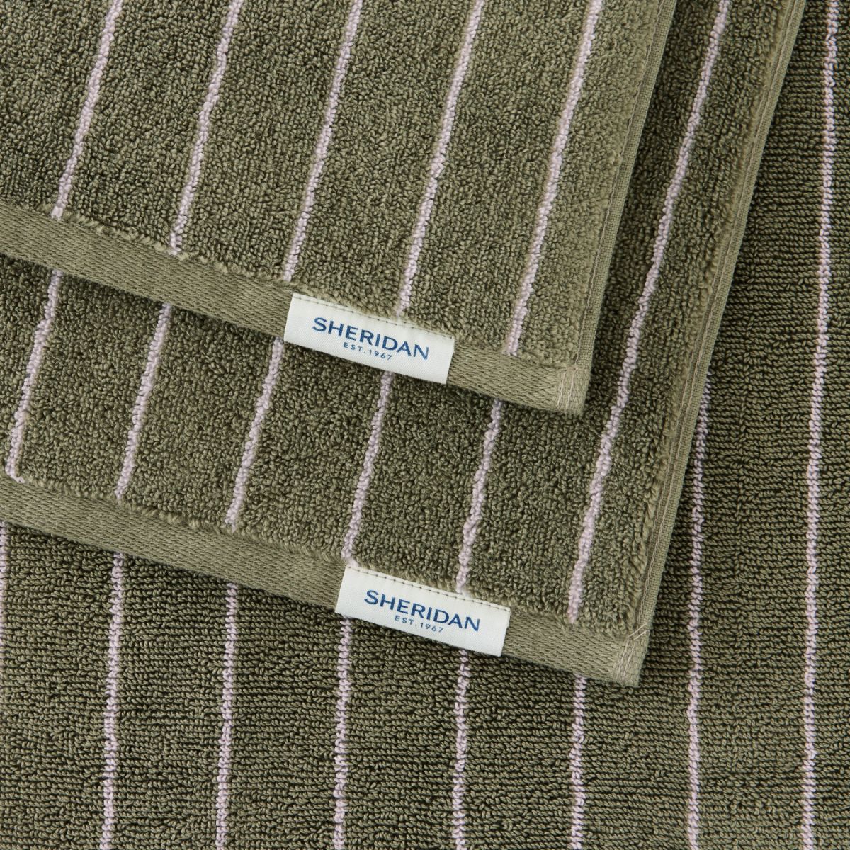 Aven Stripe Australian Cotton Towel Collection by Sheridan GREEN OLIVE