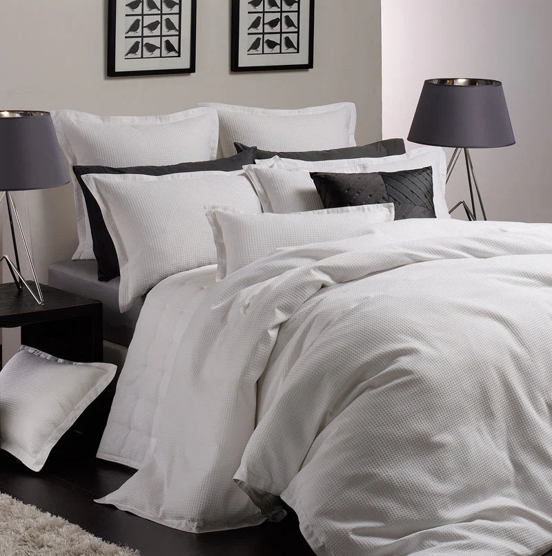 The Ascot White European Pillowcase by Platinum Logan and Mason is simple and stylish featuring a Classic Waffle weave design and twin needle finish all White, finished with a tailored flange.