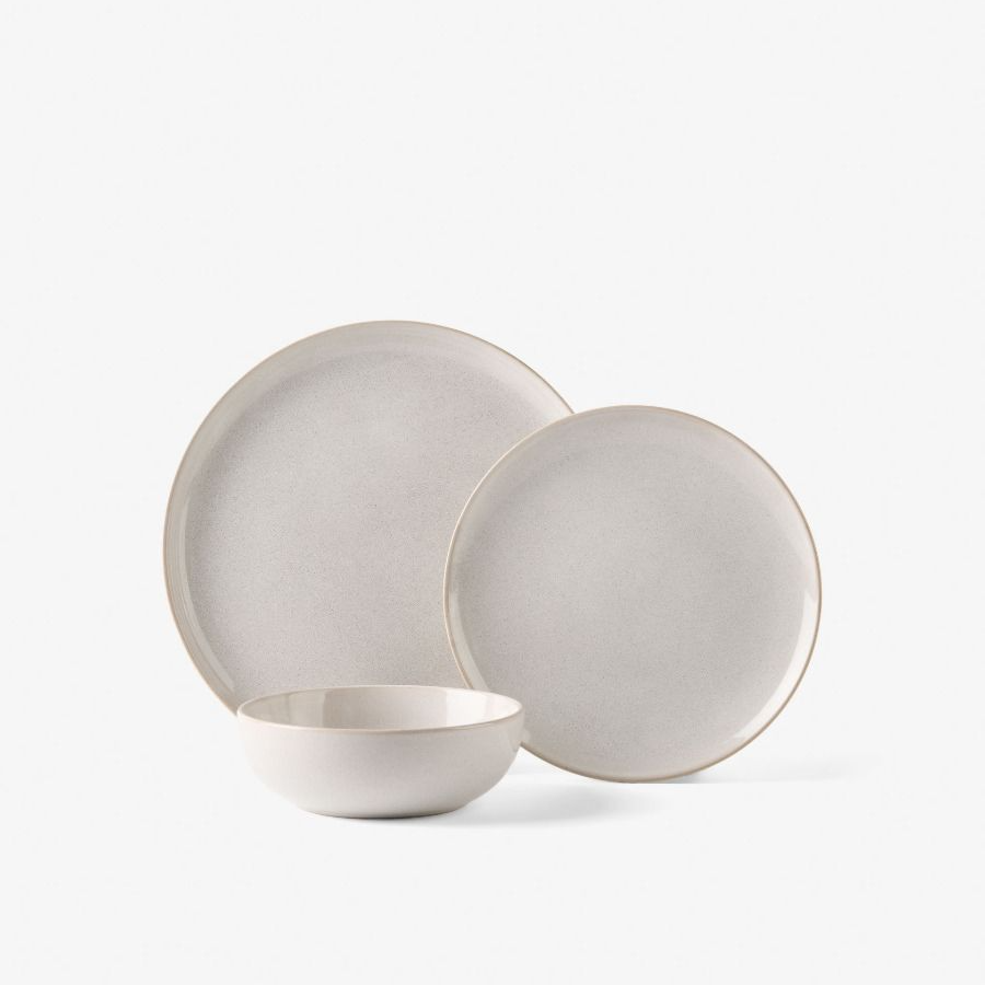 A 12-piece dinnerware set in classic white, Bobbie is beautifully crafted to bring an elegant touch to your dining. Made from durable stoneware, each piece exudes a calm, modern vibe for your table, and includes essential pieces for a four-place setting, offering a complete solution for everyday or special-occasion dining.