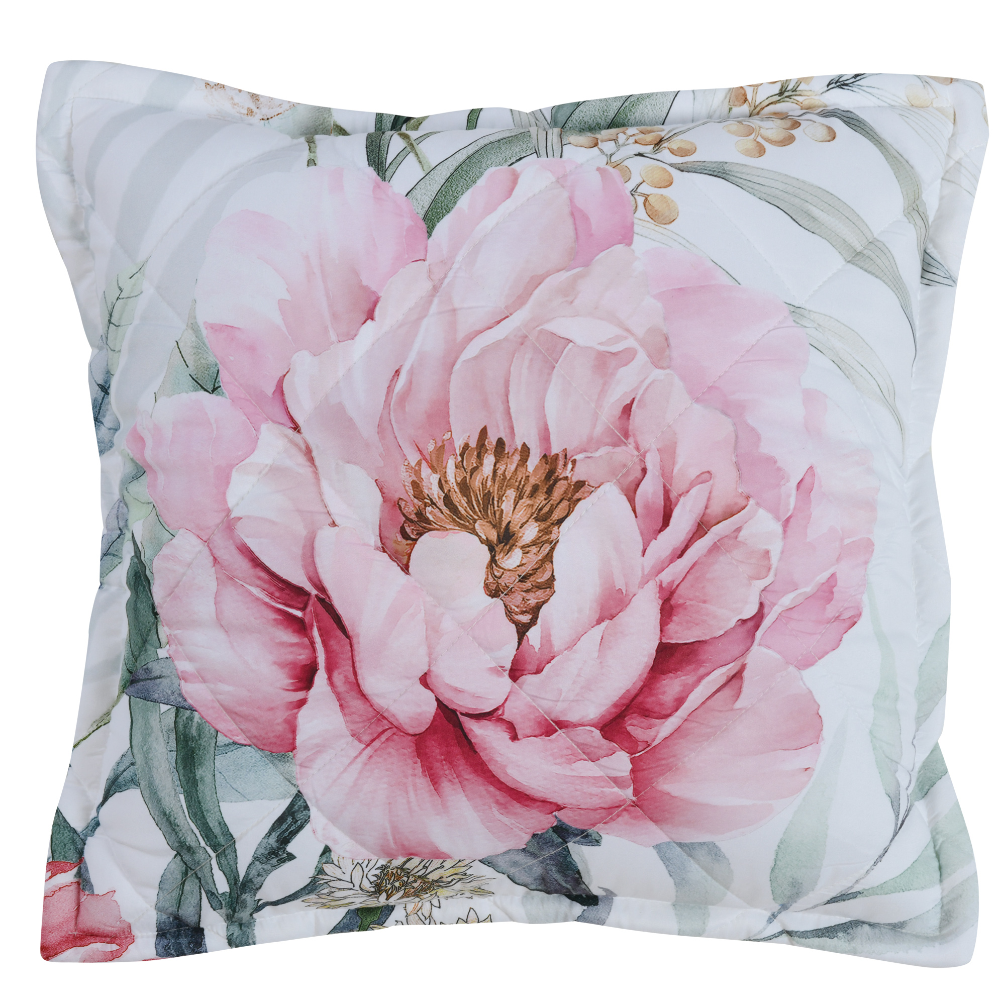 This cushion features a soothing palette of soft pink, sage and teal. Made from quilted fabric for all-night comfort and finished with a tailored edge.