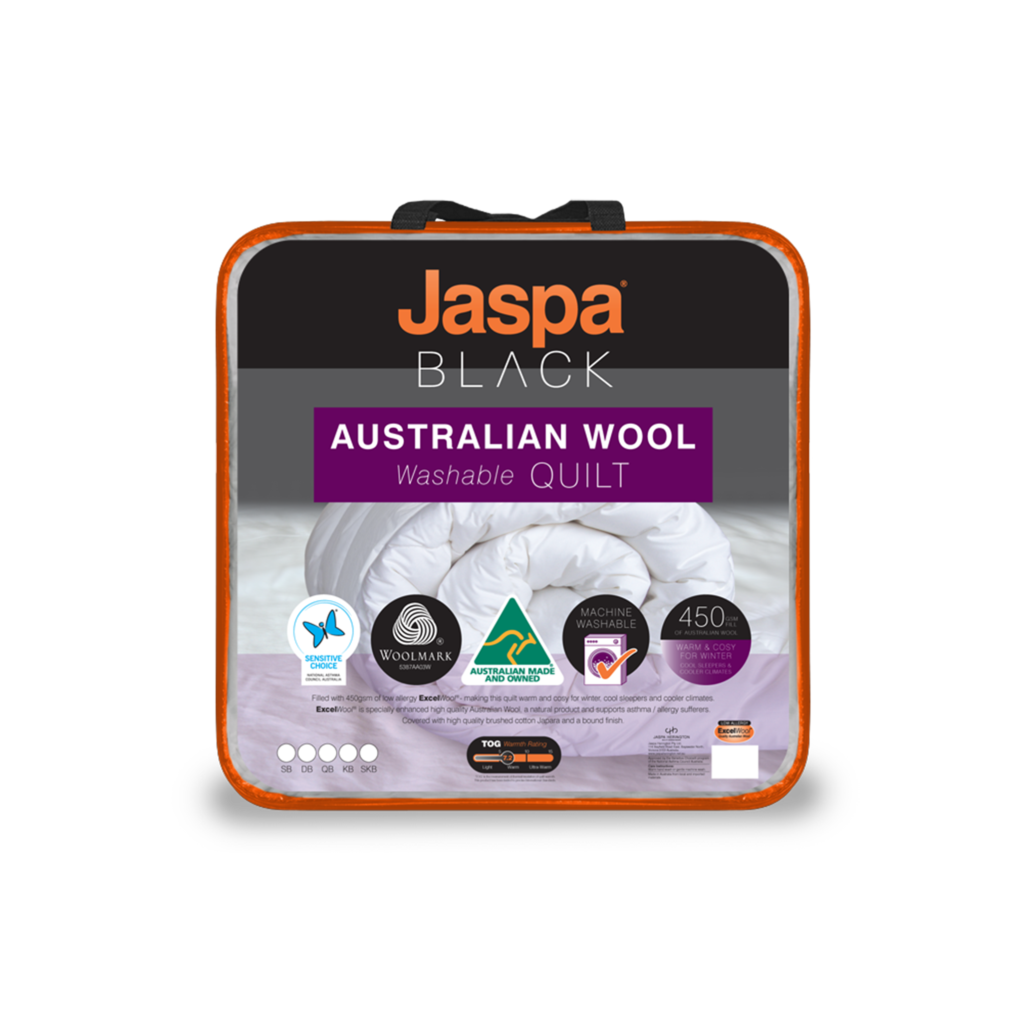 - Filled with 450gsm of low allergy ExcelWool® - making this quilt warm and cosy for winter, cool sleepers and cooler climates.