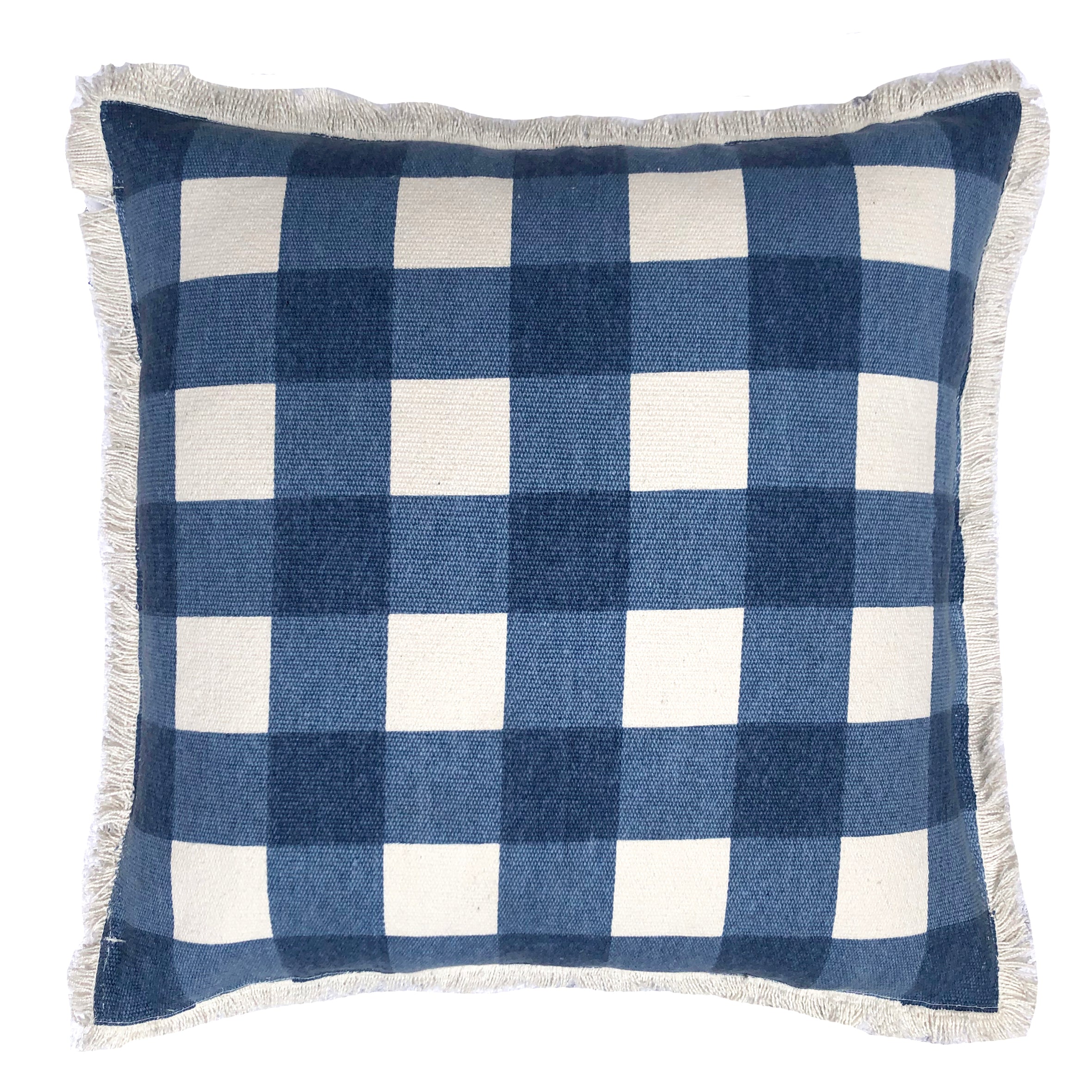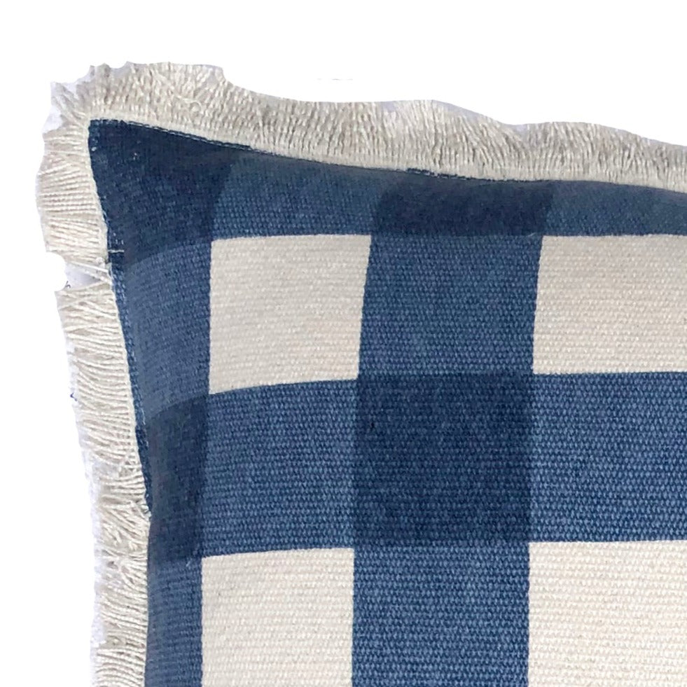 | Alana Cushion features a stylish block check pattern, highlighted by a subtle fringe edge that adds a touch of elegance and texture to any space. This cushion is filled with a 100% feather insert |