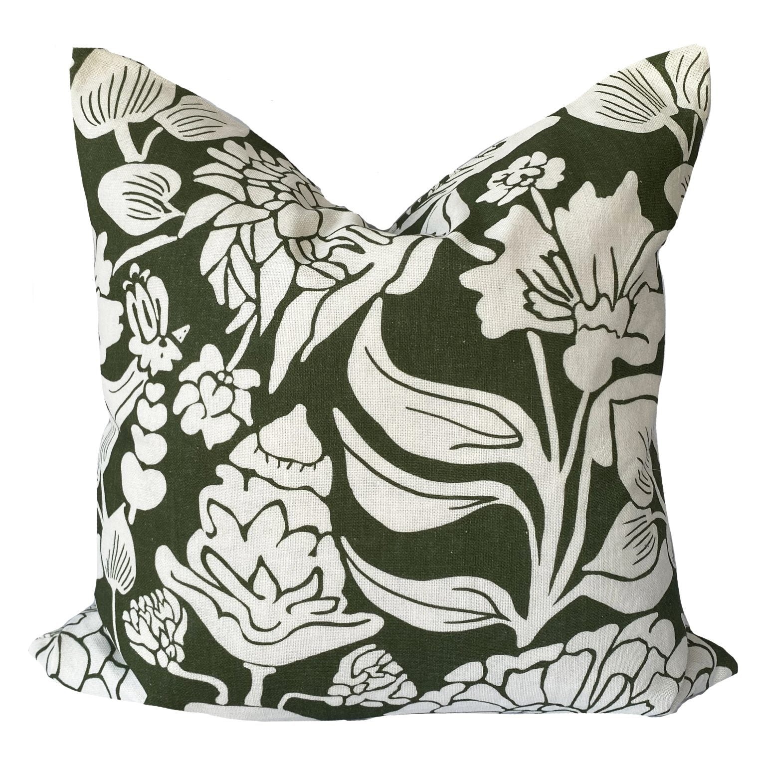 | Zaab Darcy Olive Cushion features a stylish reversible design, offering versatility to suit various decor’ styles. Both sides boast a modern floral leafy print, injecting a touch of nature into any space. Zaab Darcy Olive Cushion is made with 45% Cotton and 55% Linen and features a feather-filled insert. |