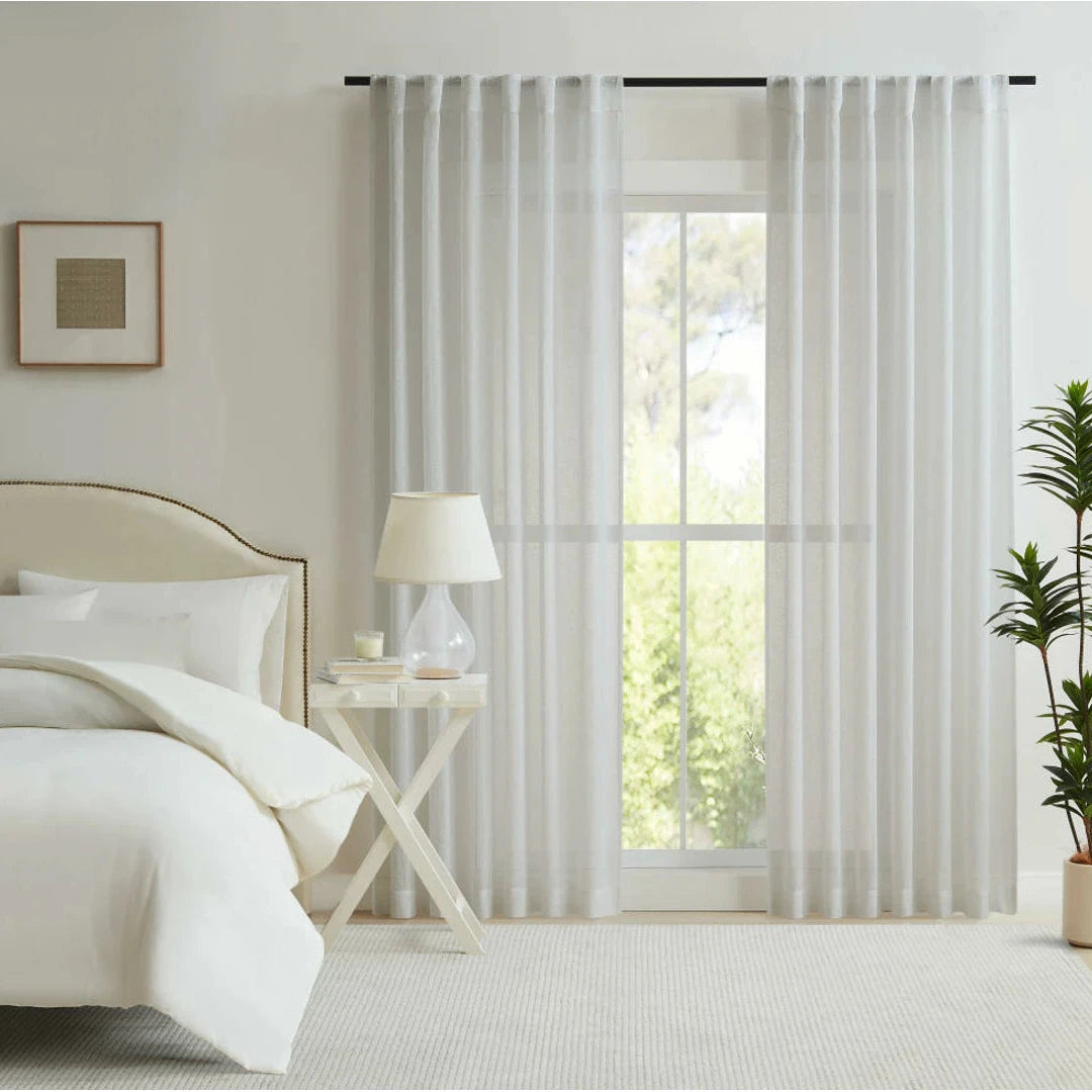 Evoke a luxe, dreamy ambience in any room by draping multiple sheer curtains side-by-side, to diffuse and soften natural light. Add depth and warmth by pairing your sheers with our Room-Darkening or Block-Out Curtains for enhanced privacy and light control.