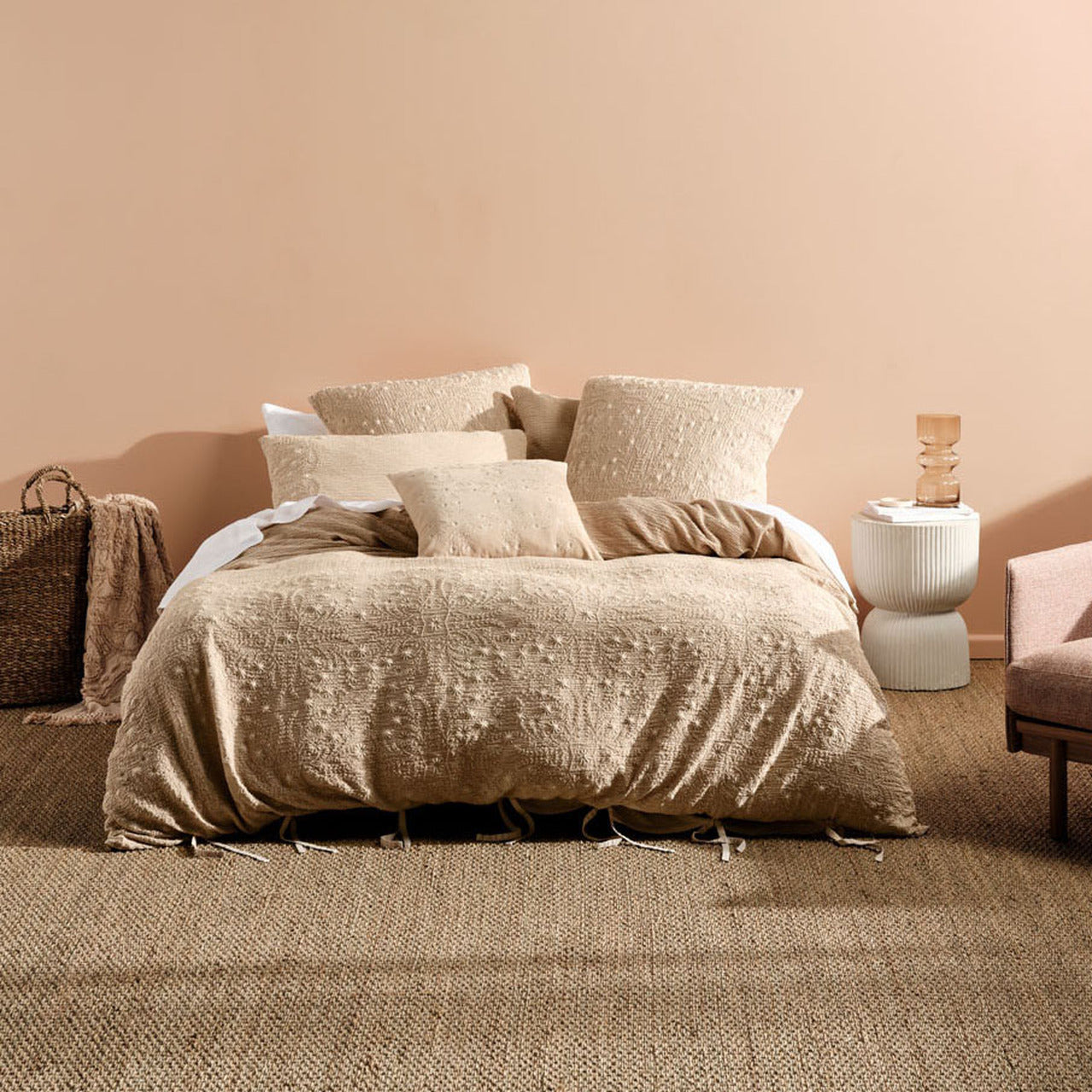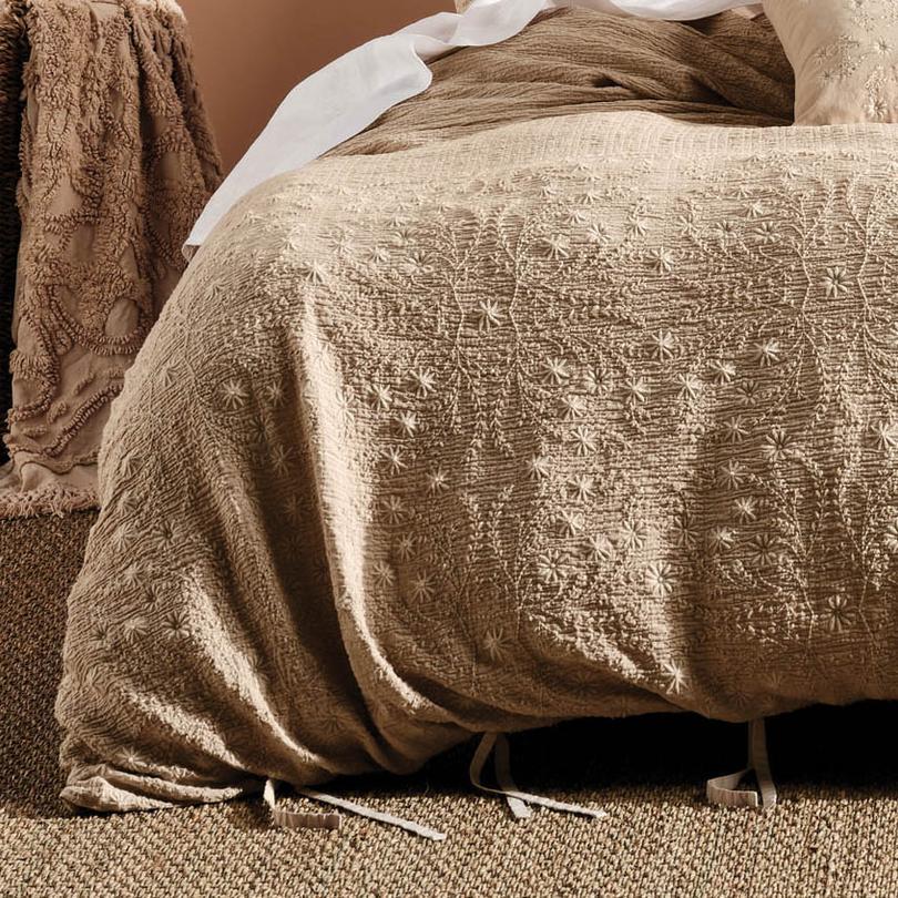 The Abigail Quilt Cover Set Range Sand By Linen House Lifestyle is every bit vintage with its textured cotton. Delicately embroidered and stone-washed, this set will cater to every diehard romantic. Complete the look with matching accessories. Other colours also available.