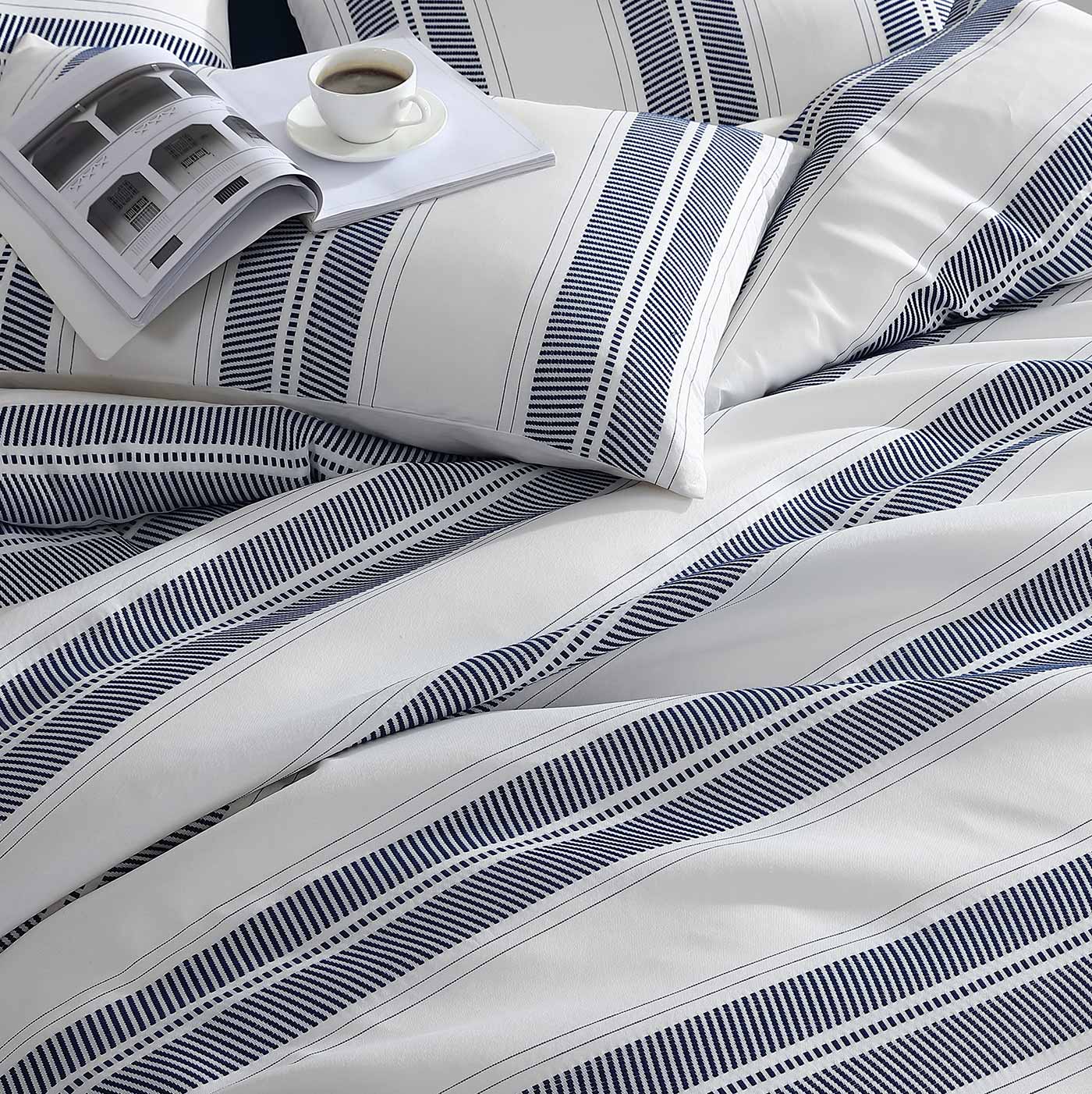 Cadet Navy features large textured stripes in nautical navy for laid-back summer style. Match with co-ordinating European pillowcases and simple accessories to complete the look.