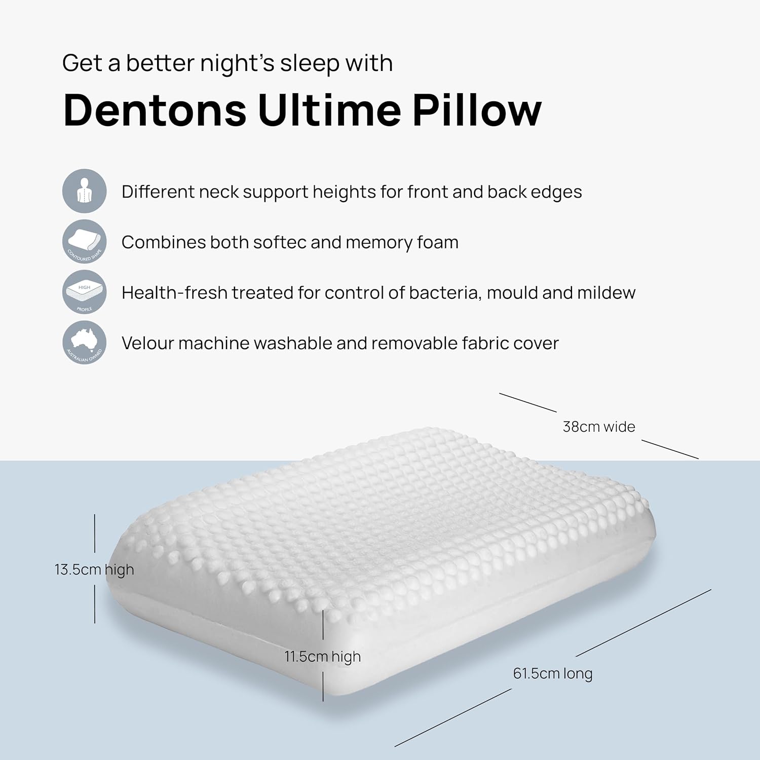Ultime is the world’s first co-moulded pillow. Made in Australia from Memory Foam and Softec™️, the Ultime is designed for side and back sleepers who crave superior luxury, comfort and support.