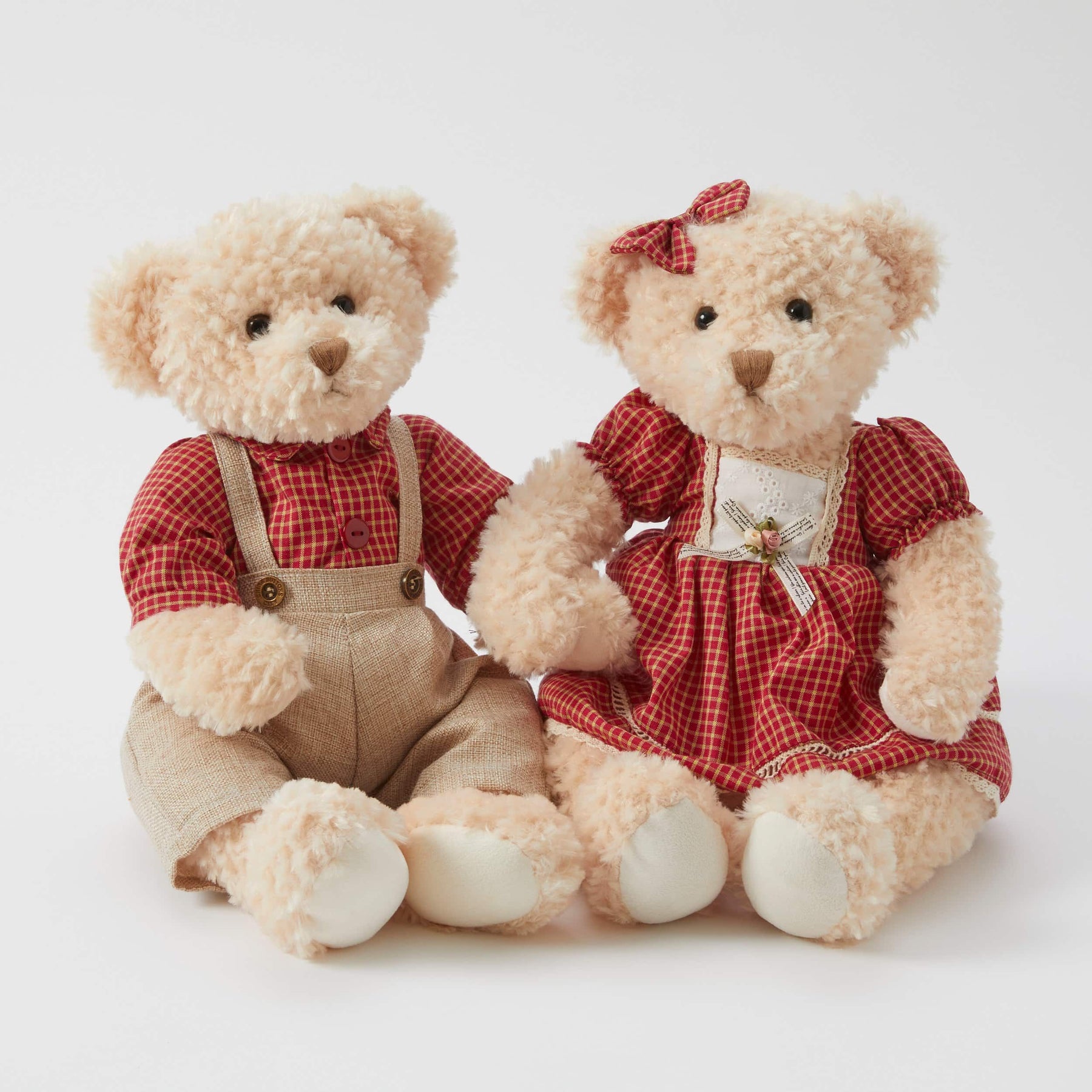 Edward is a sweet and hard-working farmer! He wears a cute plaid button down with brown overalls. This little bear is made from premium quality plush faux fur fabric. Wearing matching outfits with another bear named Ethel, these two are inseparable—so get them together so they don’t have to separate!