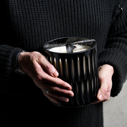 The black glass encases the finest blend of botanical soy wax, scented with a sophisticated woody fragrance of black tonka been, cardamom and bitter orange. Pure luxury for you and your home.