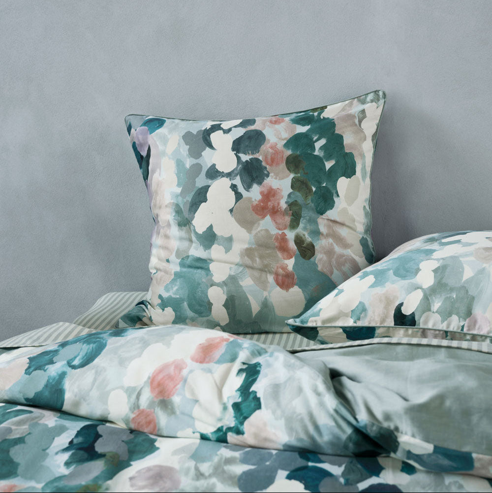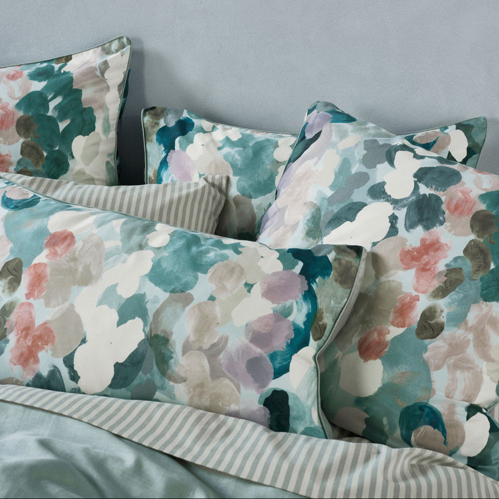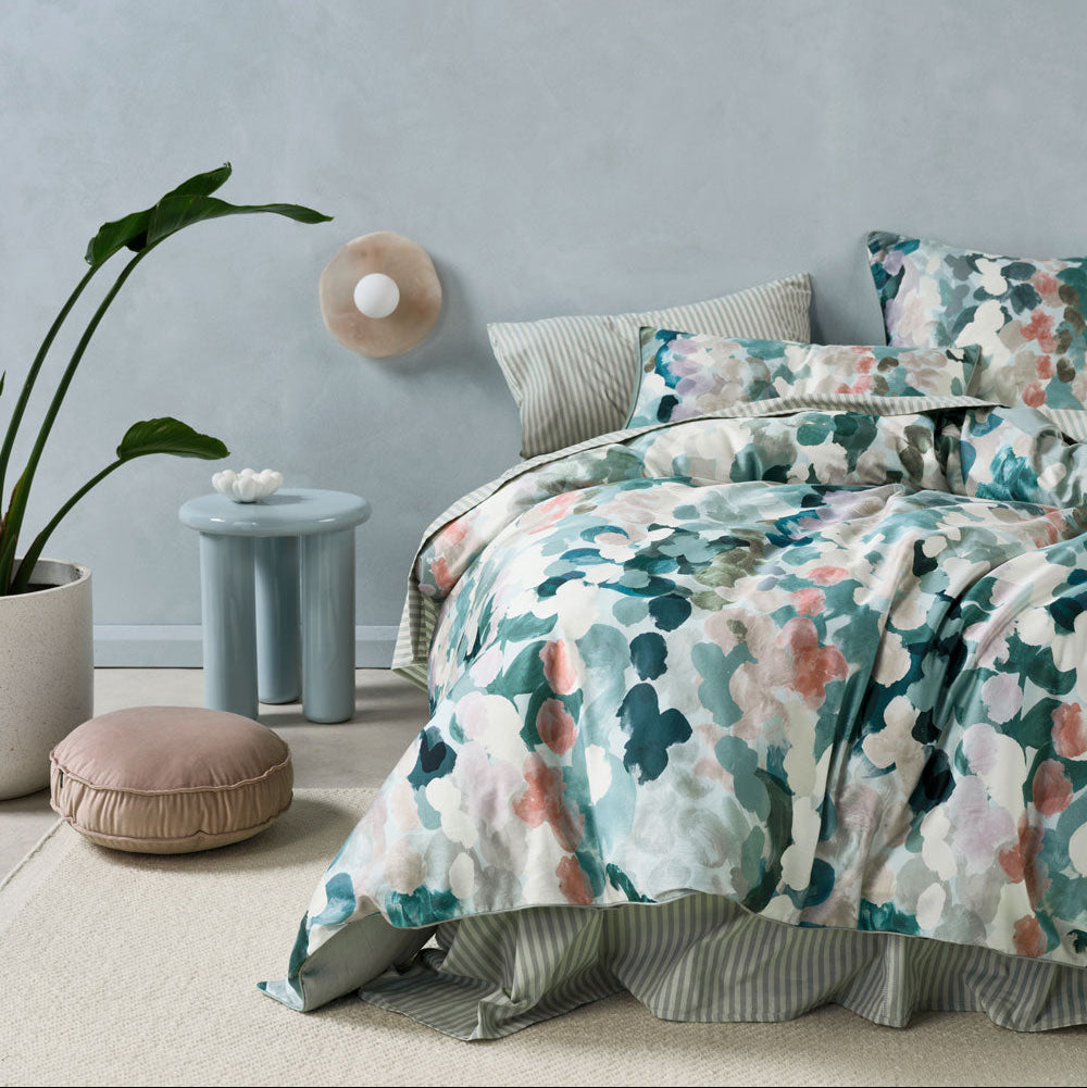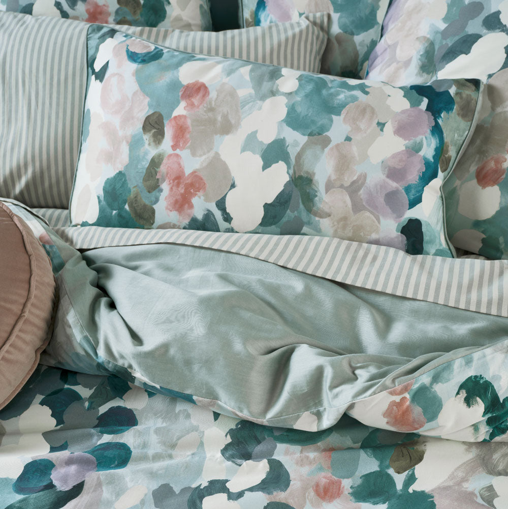 Delight in soft hues of silver-blue, seafoam and birch, combined with clay and mauve for a contemporary touch, which gives this luxe cotton sateen set versatility for styling.