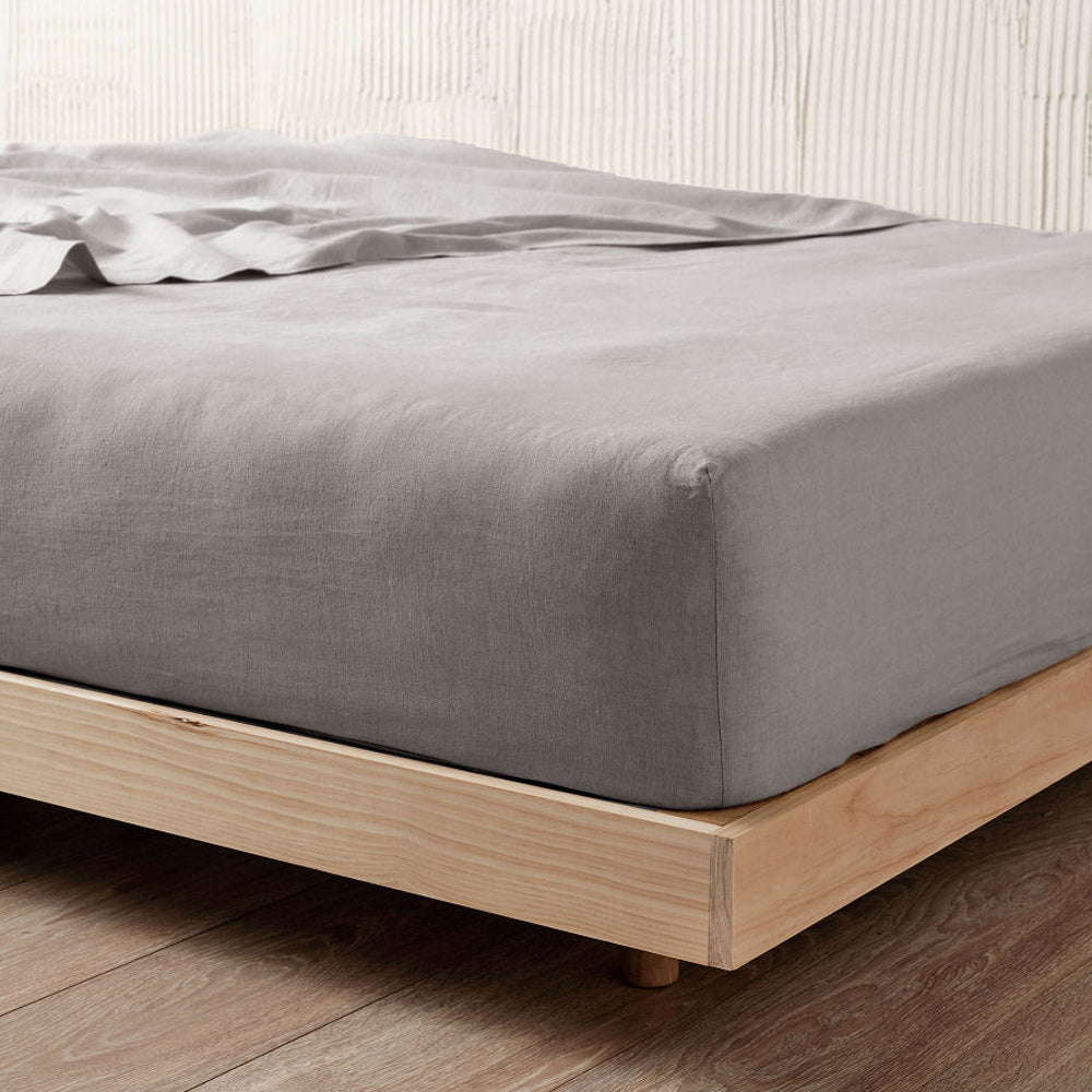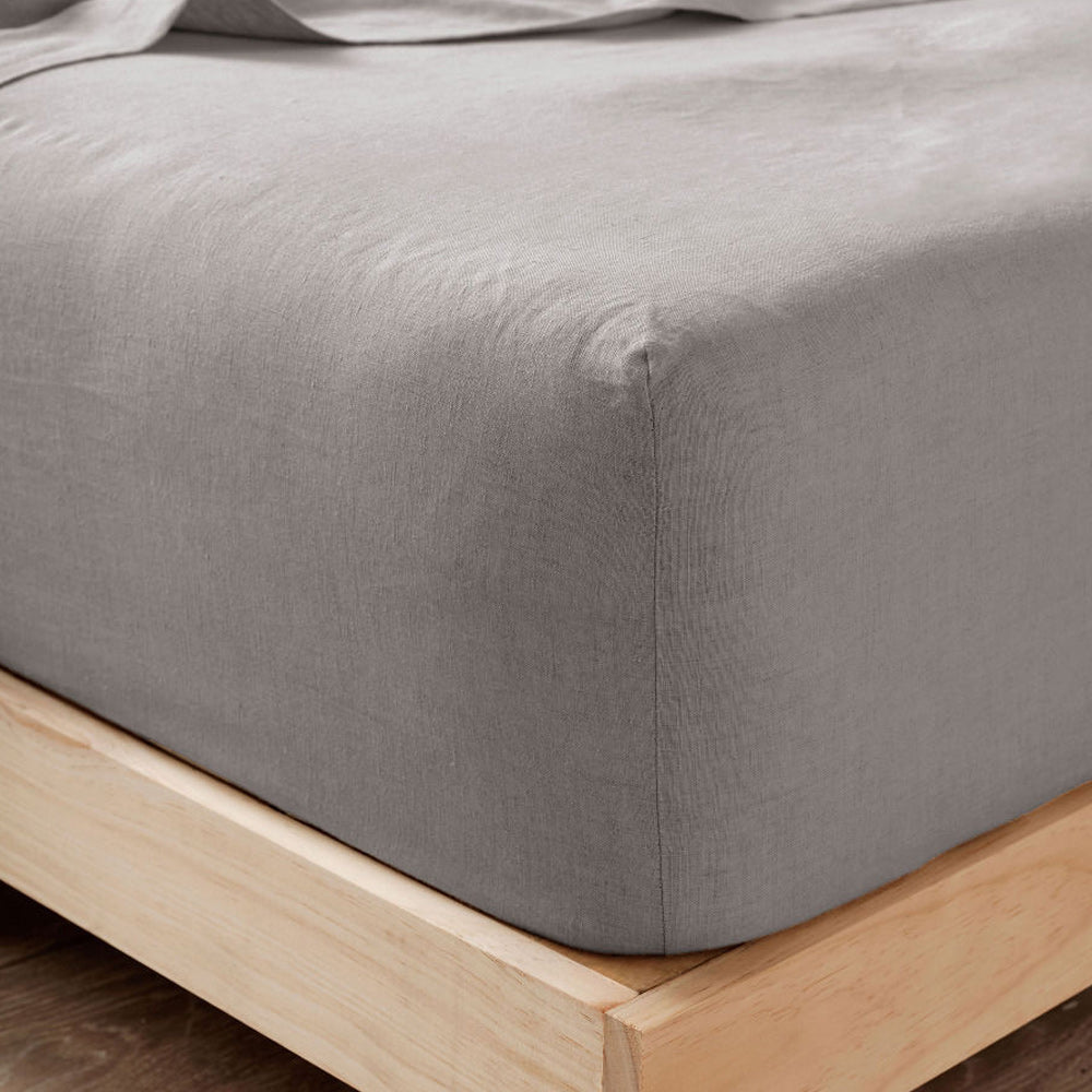 Nimes Pure Linen FITTED SHEET Ash by Linen House