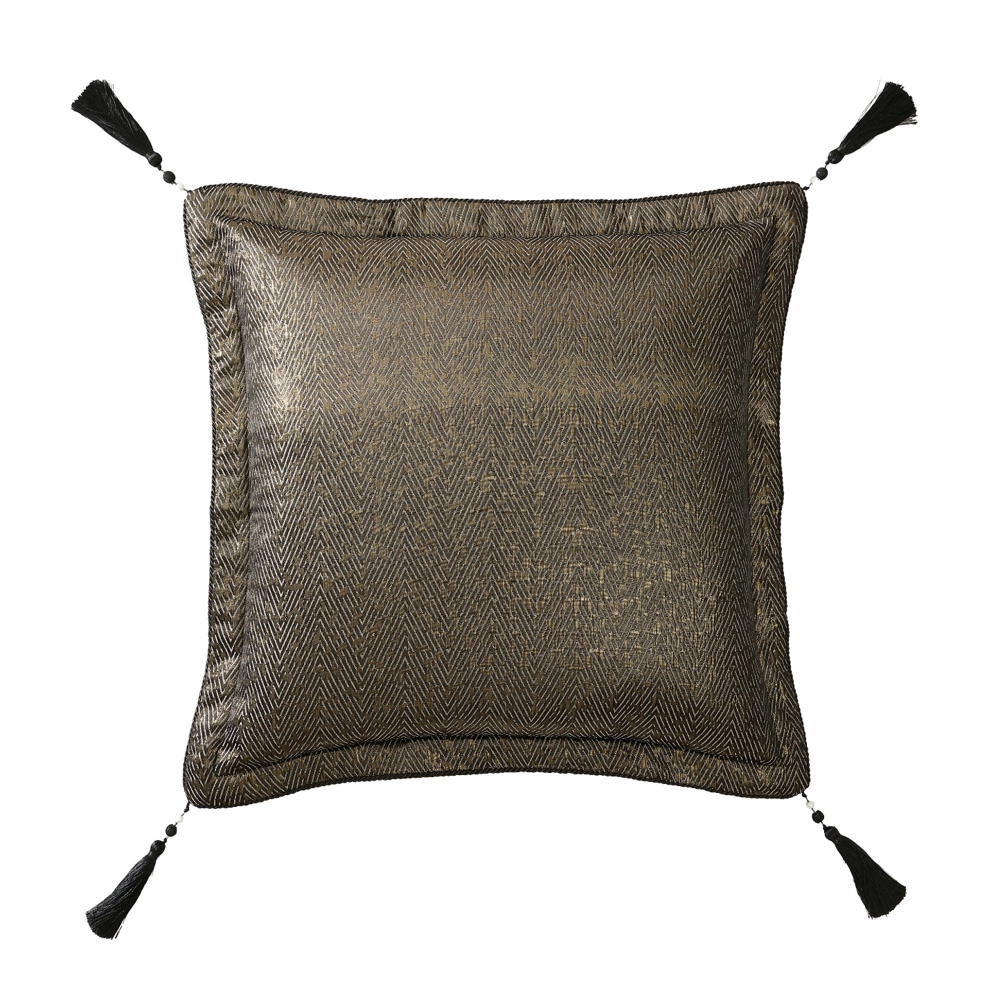 - Trim: 5cm self flange, twisted rope piping, corner tassels