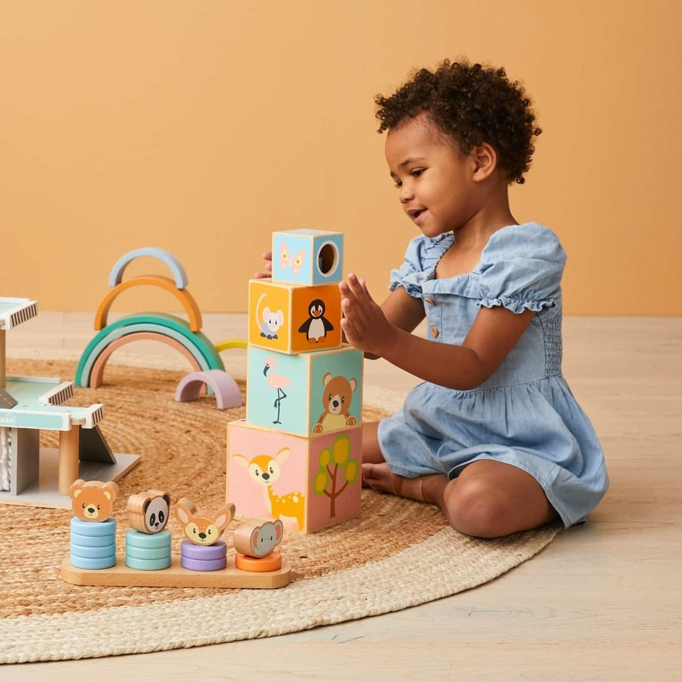 Made from quality, solid wood and finished in beautifully coloured paints, this gorgeous Stacking Cube set combines fun and learning by fostering curiosity and imagination, and encouraging hand-eye coordination, problem solving skills and early colour and shape recognition.