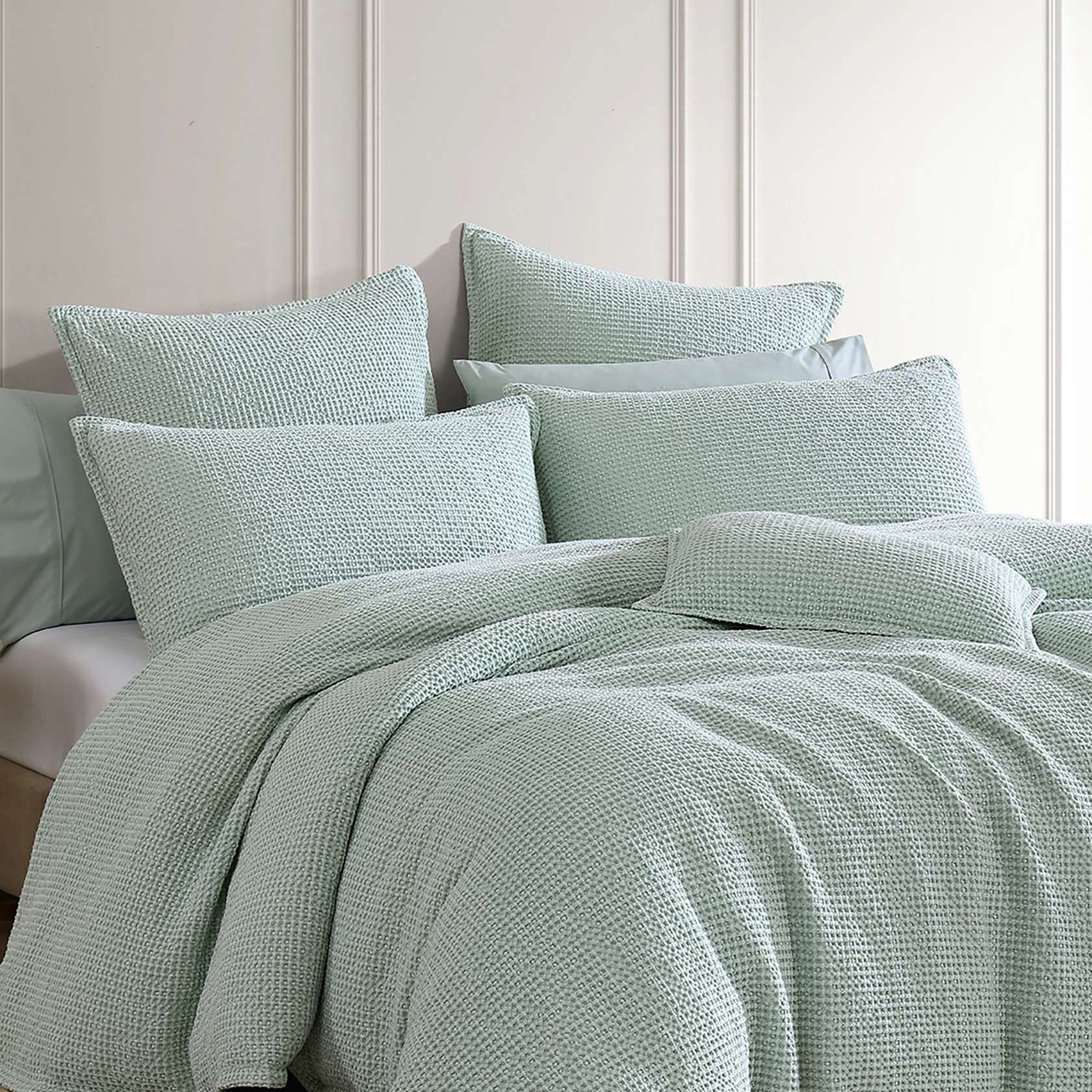 Sure to become an essential staple in homes, this waffle captures chunky texture, versatile styling and comfort all in one. For the spring and summer season, Urban has been given a fresh new look in colour surf. Urban has a modern stonewashed finish to enhance the waffle texture and 3D effect.