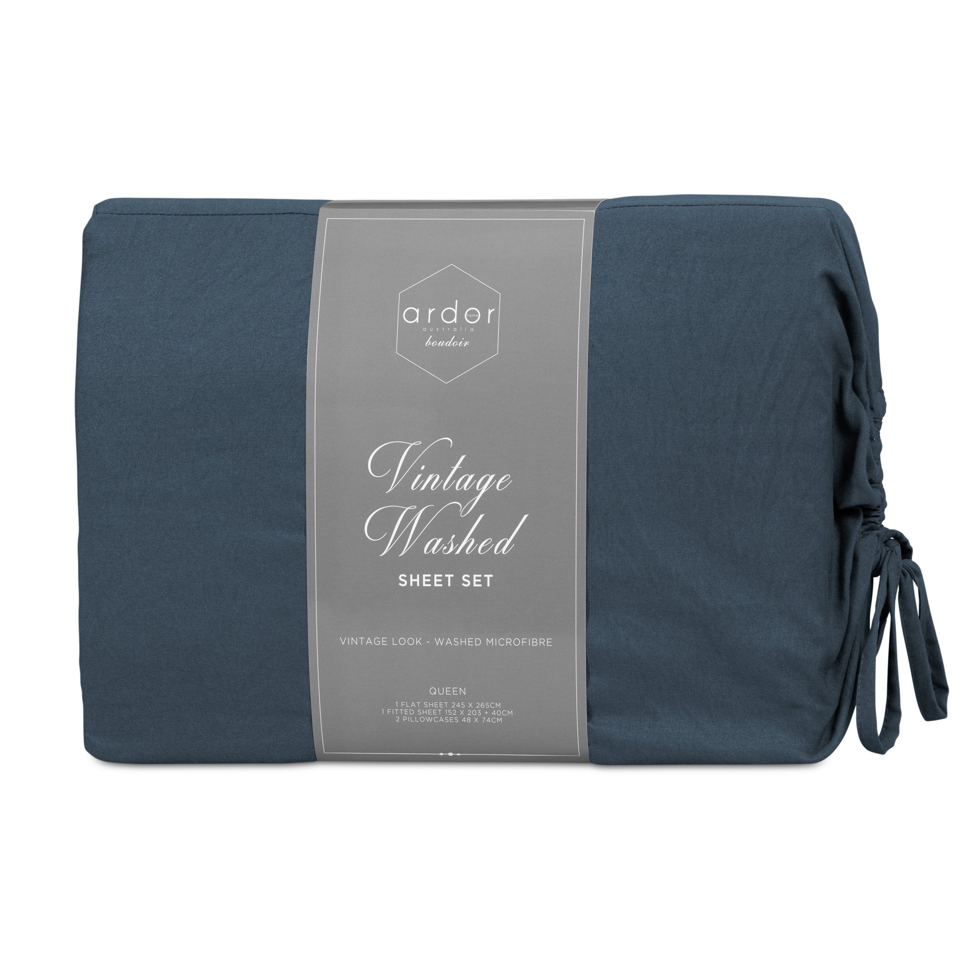 Vintage Washed Sheet Set Navy by Ardor Boudoir